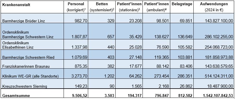 Ordensklinikum Linz Elisabethinen | 1.337,98 | 440 | 25.028 | 76.590 | 105.582 |