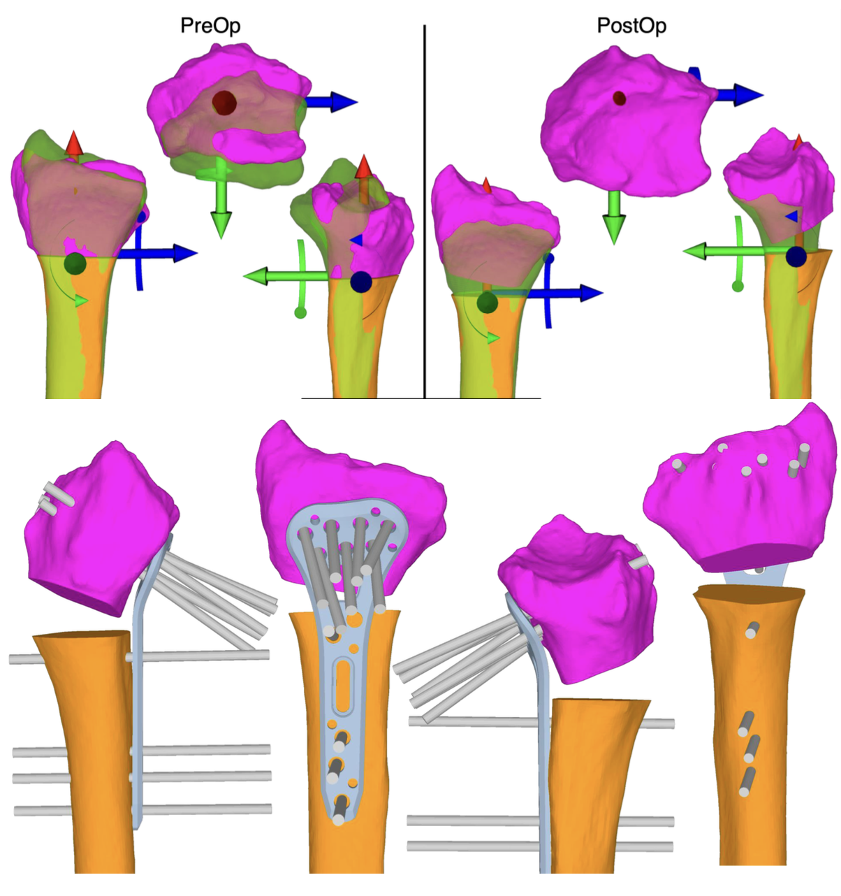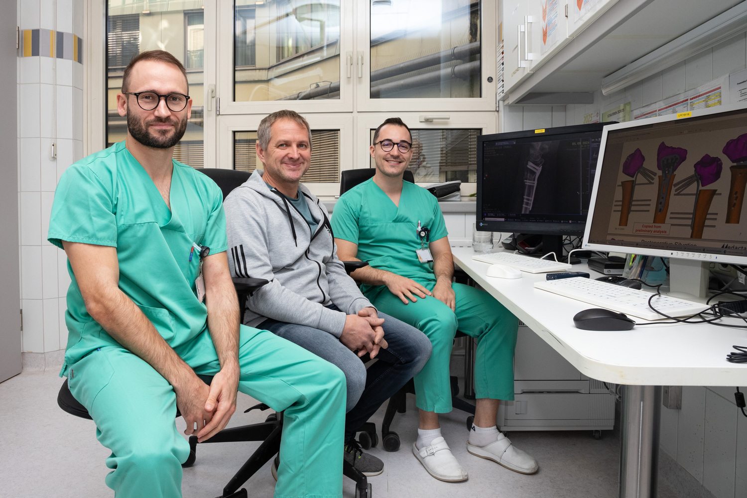 Bei der Operation wurde der Knochen durchgesägt, bevor das Gelenk mithilfe einer 3D-gedruckten Schablone an der richtigen Stelle positioniert werden konnte. Der entstandene Zwischenraum wurde mit einem Stück aus dem Beckenknochen aufgefüllt, damit der Knochen besser zusammenwachsen kann. „Diese dreidimensional modellierten Schnittblöcke werden für alle Patient*innen individuell von einer Schweizer Firma gefertigt“, sagt Assistenzarzt Michael Gattringer. Um zu kontrollieren, ob die Heilung den gewünschten Verlauf genommen hatte und vor allem der Gelenkswinkel wieder passt, wurde postoperativ ein weiteres CT gemacht. Die Bilder bestätigten die erfolgreiche Rekonstruktion des Gelenks. Die Druckverhältnisse im Handgelenk sind seither deutlich verbessert und der Patient hat keine Schmerzen mehr. „Jetzt heißt es nur noch, die Muskulatur wieder aufzubauen“, sagt Thomas Schoissengeier.