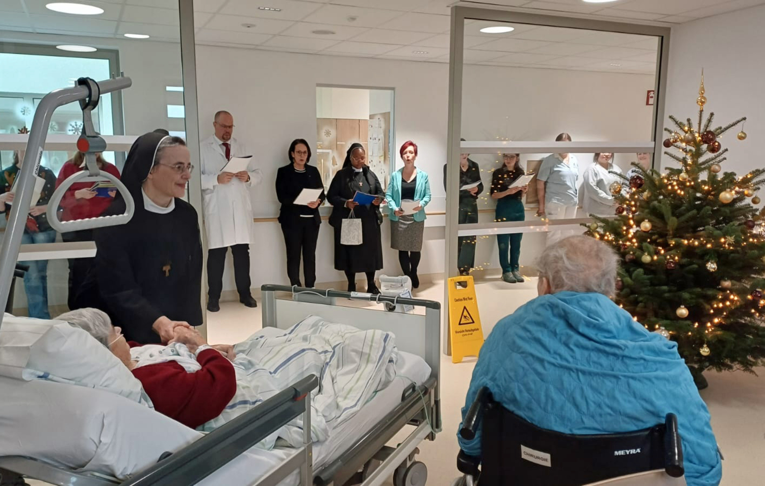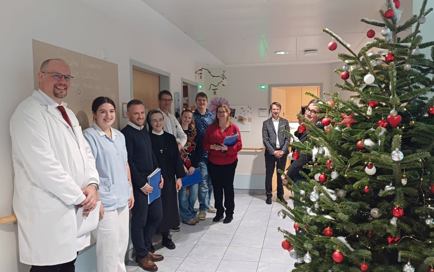 Gerade am Heiligabend nicht zu Hause sein zu können, ist für viele Patientinnen und Patienten besonders traurig. Um trotz medizinischer und therapeutischer Behandlung sowie fürsorglicher Pflege weihnachtliche Stimmung zu schaffen, wurde das Krankenhaus St. Josef Braunau festlich geschmückt. Am Nachmittag des 24. Dezember besuchten die Krankenhausoberin Sr. Katharina Franz, MAS, weitere Mitglieder des Vorstands des Krankenhauses, Vertreter der Ärzteschaft sowie der Seelsorge die Stationen. Dabei sangen sie Weihnachtslieder und überbrachten persönliche Weihnachtswünsche.